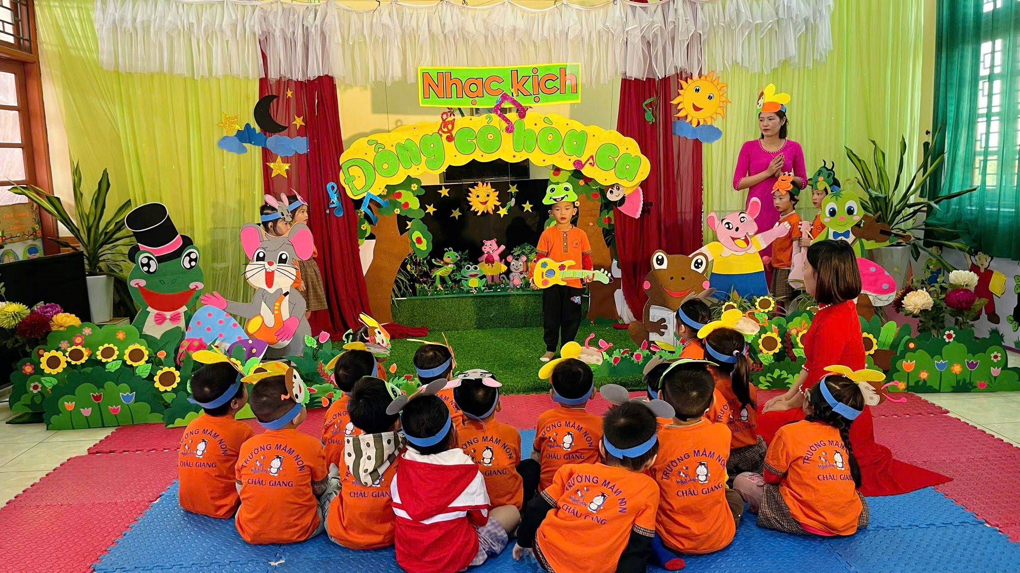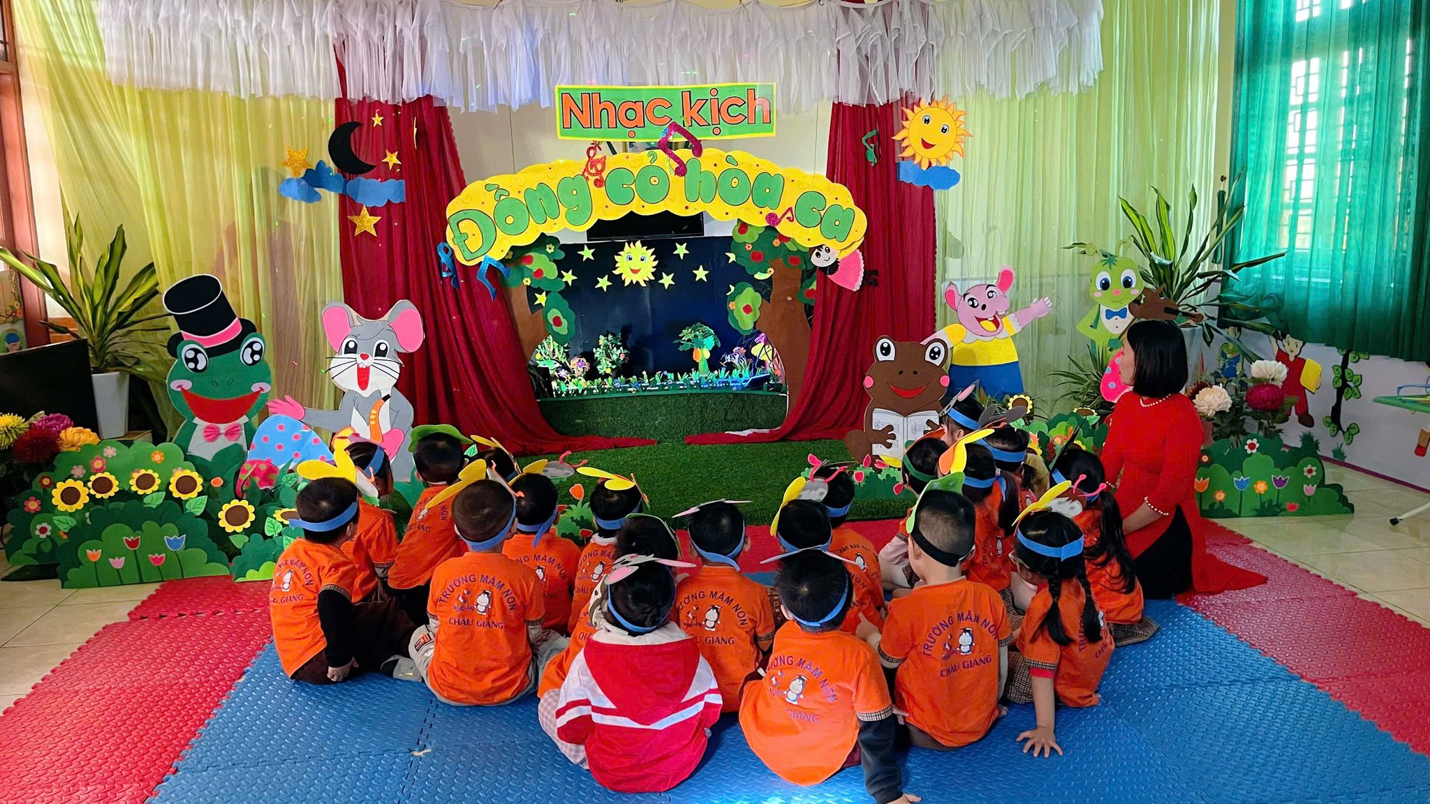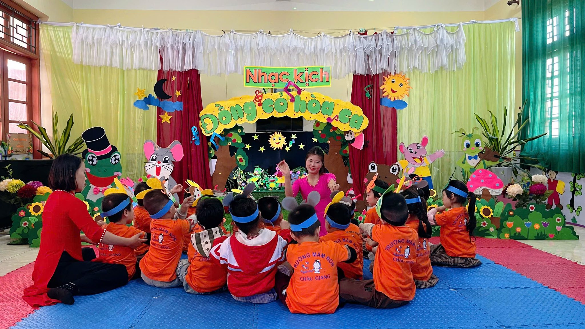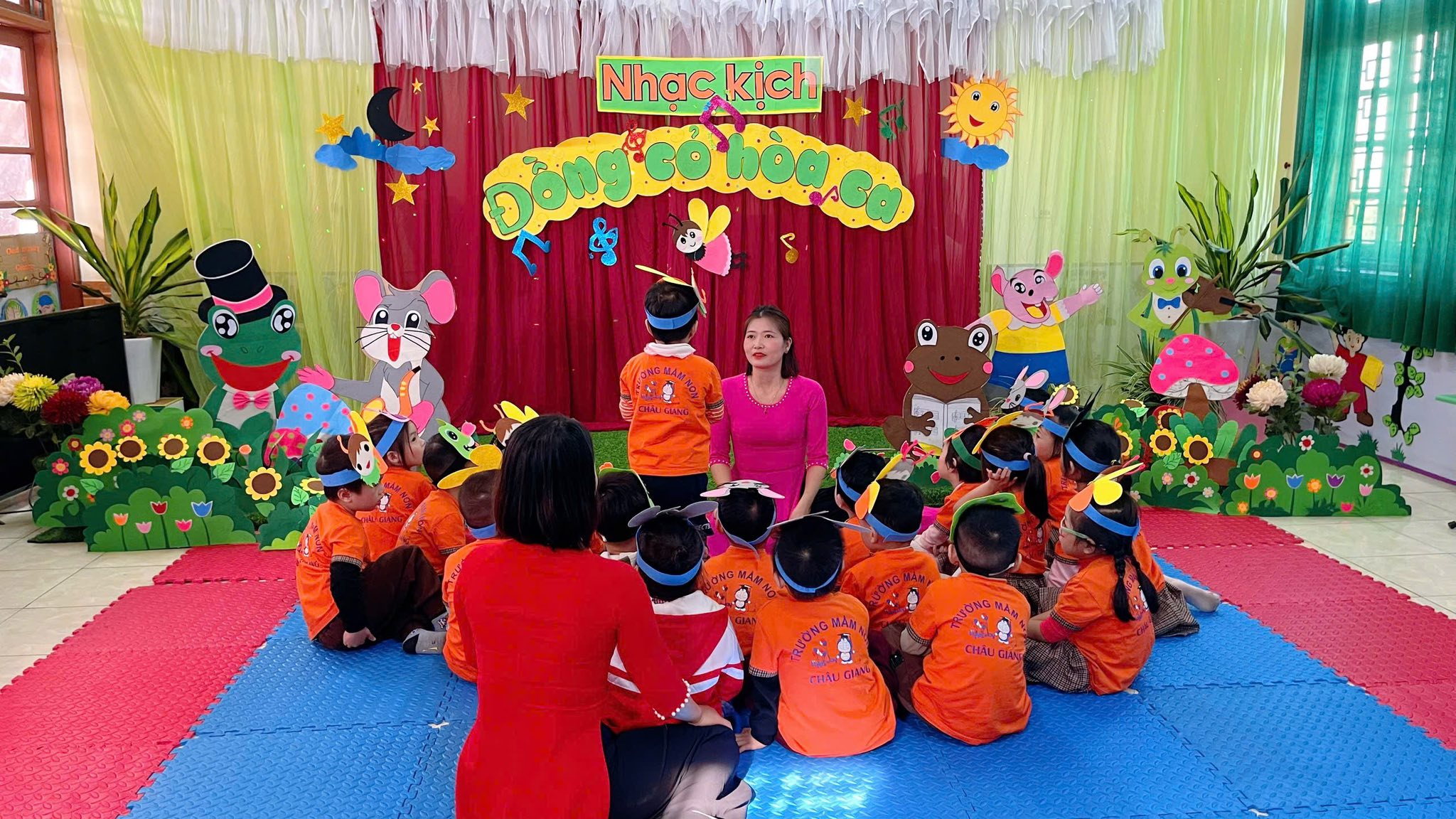 – Cô giáo Phạm Thị Vân Anh thực hiện hoạt động kể chuyện nhạc kịch “ Đồng cỏ hòa cả”