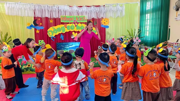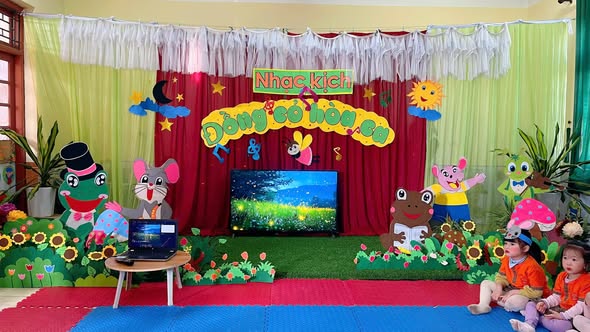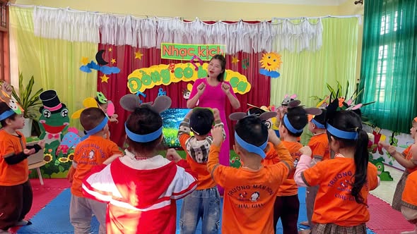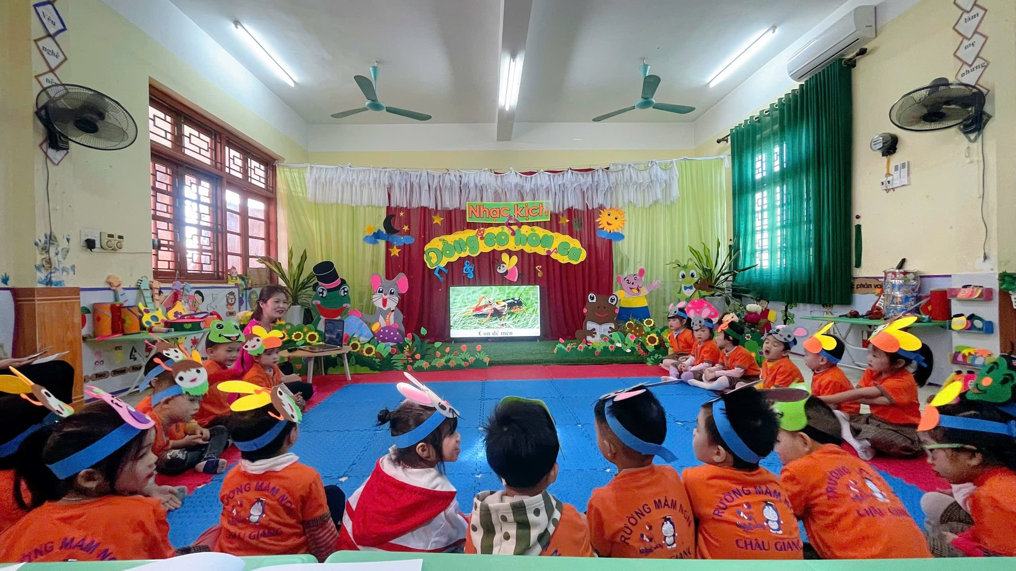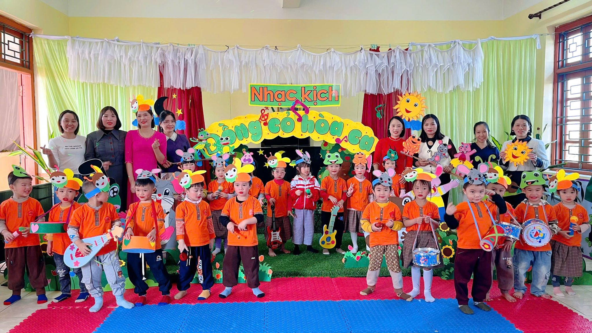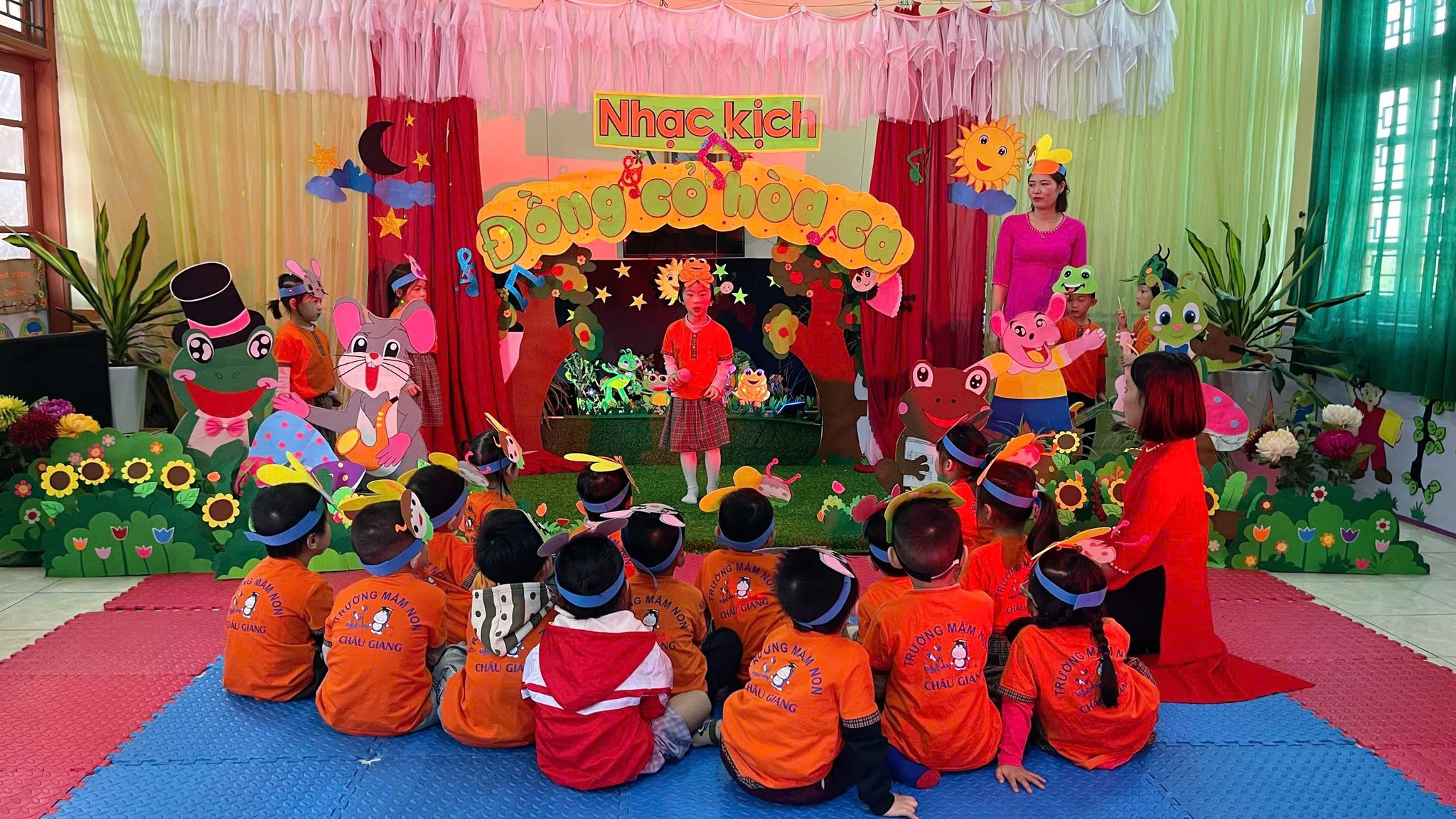 – Cô giáo Phạm Thị Vân Anh thực hiện hoạt động kể chuyện nhạc kịch “ Đồng cỏ hòa cả”