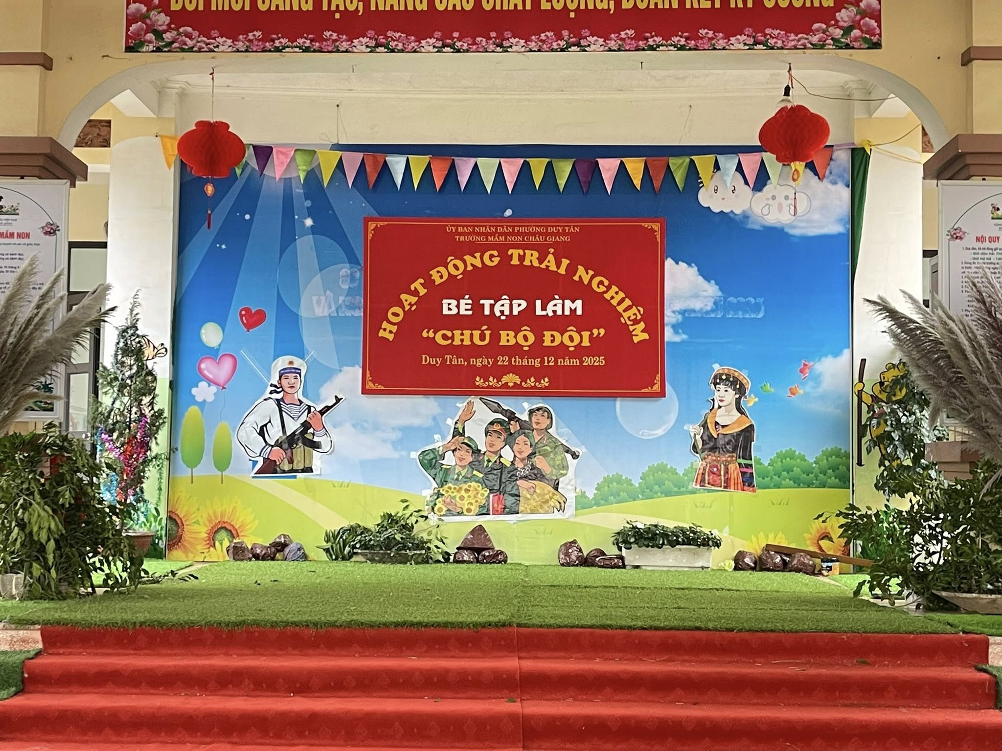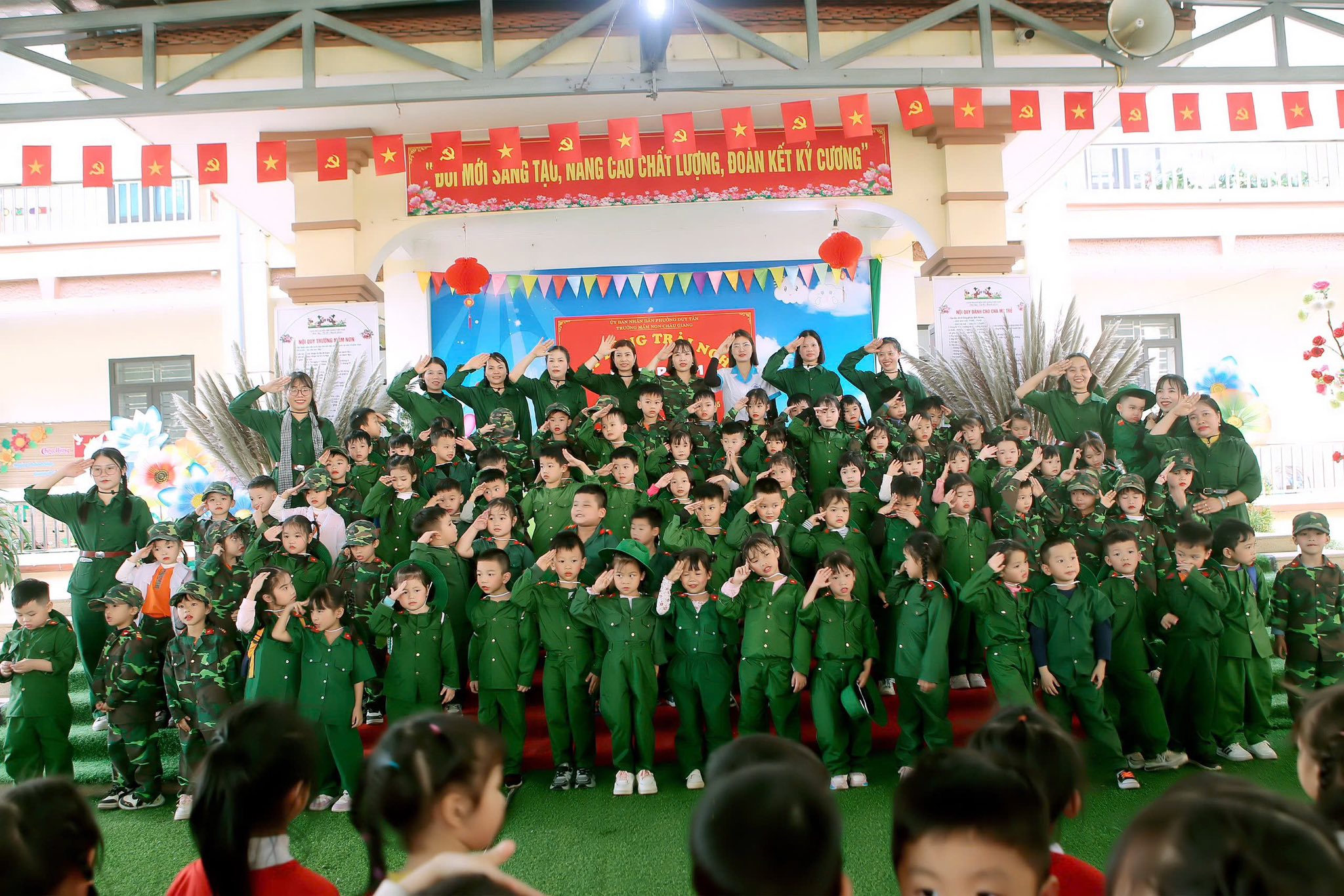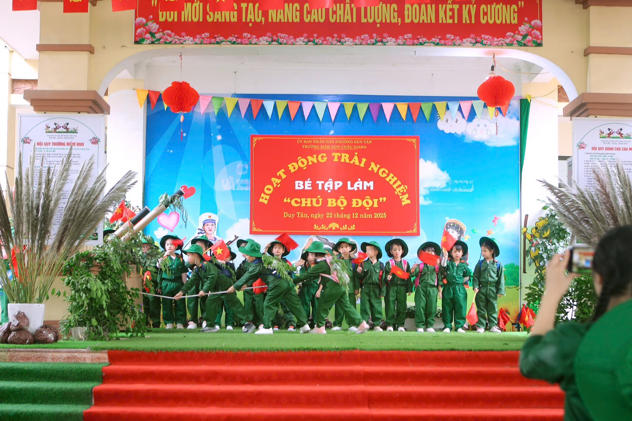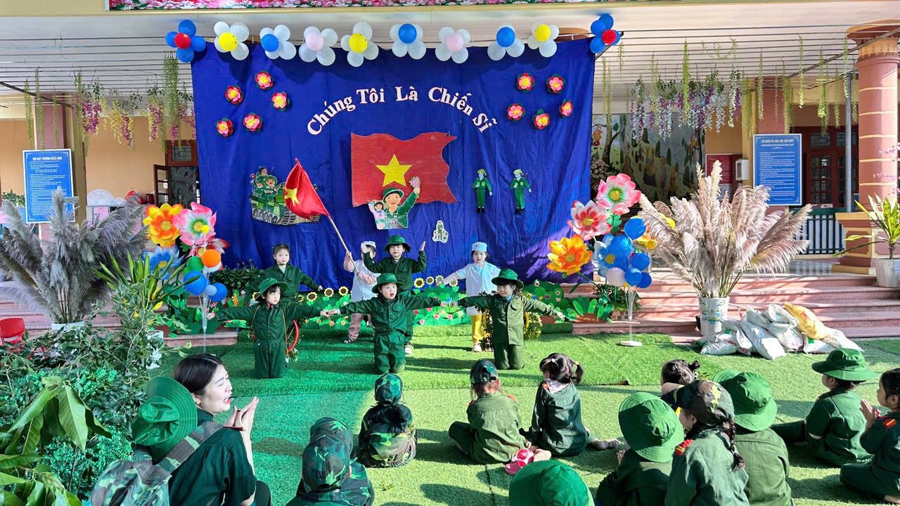 Hòa chung với không khí tưng bừng của cả nước chào mừng 81 năm ngày thành lập Quân đội nhân dân Việt Nam (22/12/1944 – 22/12/2025) cô và trò Trường Mầm non Châu Giang tổ chức nhiều hoạt động thiết thực hướng tới ngày 22/12. Hoạt động này thực sự ý nghĩa và thu hút được nhiều trẻ tham gia bởi nội dung phong phú cùng với các hoạt động trải nghiệm đa dạng. Từ các nhóm lớp, những câu thơ, bài hát được cất lên rộn vang cả mái trường, những hình ảnh kỷ niệm ngày 22/12 được bắt gặp ở tất cả các nhóm lớp.