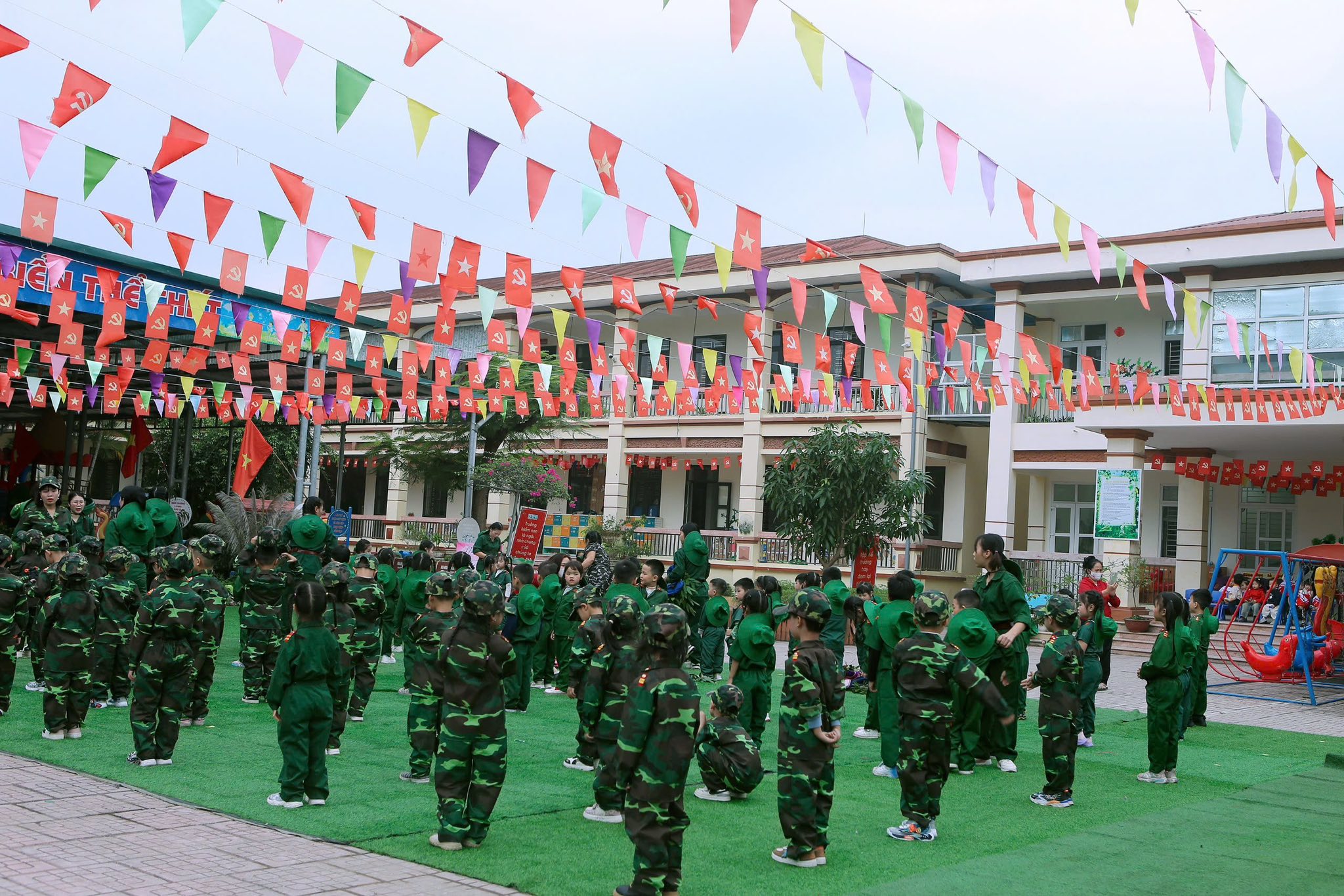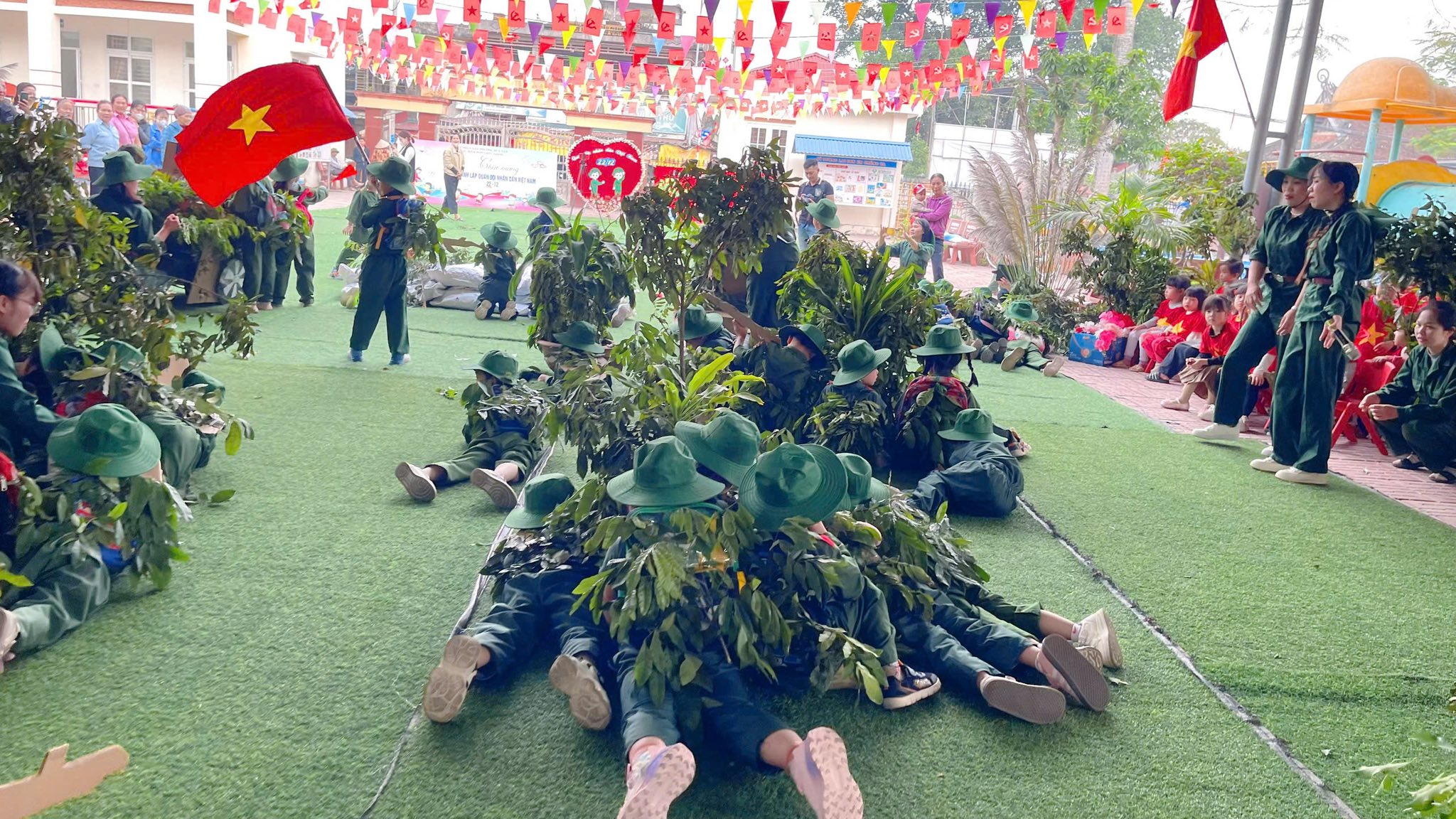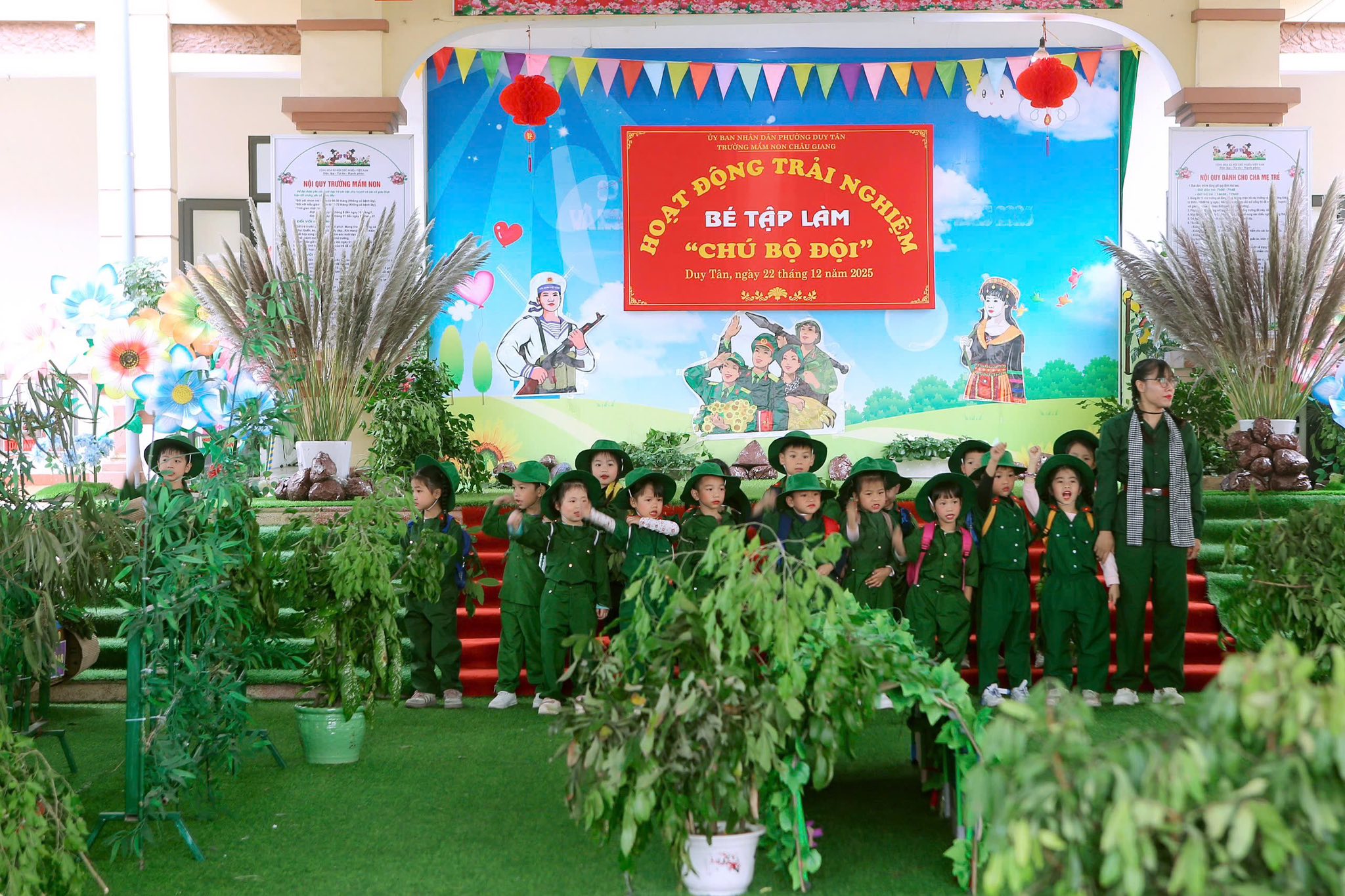 Hòa chung với không khí tưng bừng của cả nước chào mừng 81 năm ngày thành lập Quân đội nhân dân Việt Nam (22/12/1944 – 22/12/2025) cô và trò Trường Mầm non Châu Giang tổ chức nhiều hoạt động thiết thực hướng tới ngày 22/12. Hoạt động này thực sự ý nghĩa và thu hút được nhiều trẻ tham gia bởi nội dung phong phú cùng với các hoạt động trải nghiệm đa dạng. Từ các nhóm lớp, những câu thơ, bài hát được cất lên rộn vang cả mái trường, những hình ảnh kỷ niệm ngày 22/12 được bắt gặp ở tất cả các nhóm lớp.